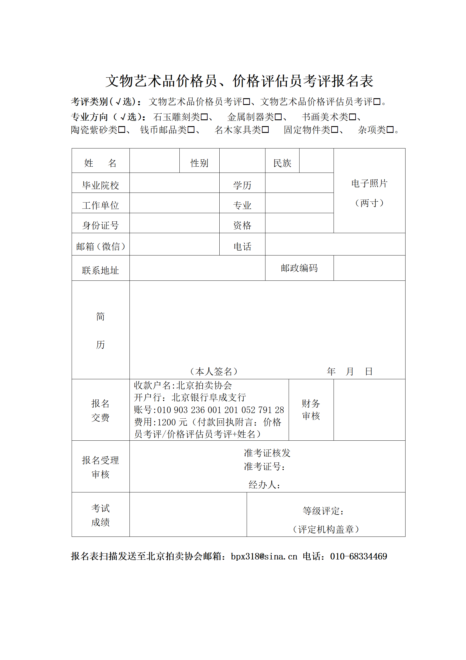 價(jià)格人員職業(yè)培訓(xùn)報(bào)名表